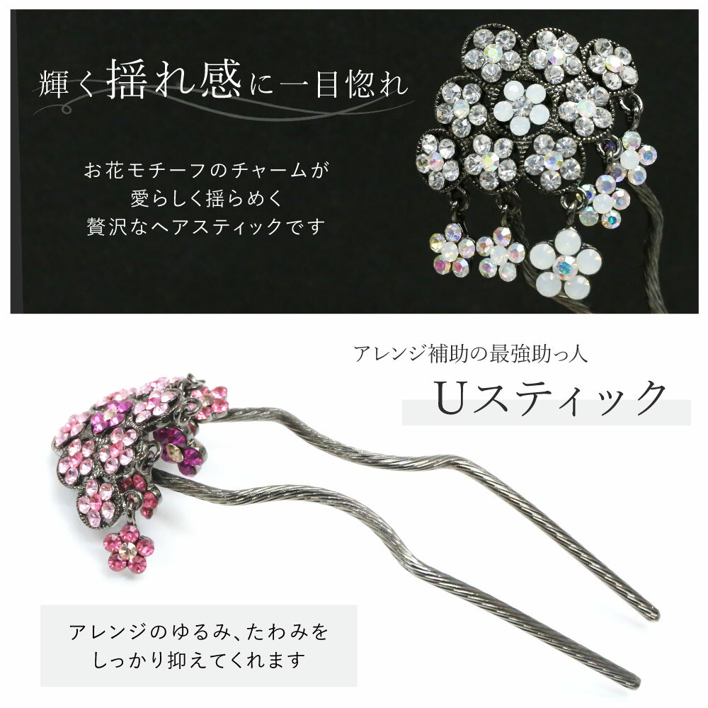 【Uスティック】ティアカメリア[結婚式 パーティ キラキラ ラインストーン クリスタル お団子 アップヘア 夜会巻き お花 フラワー カメリア チャーム 揺れる ヘアアクセサリー U字ピン]